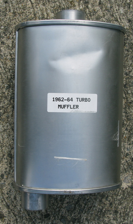 Part number CX9354: 62-64 REPRO TURBO MUFFLER-2ND DENTED