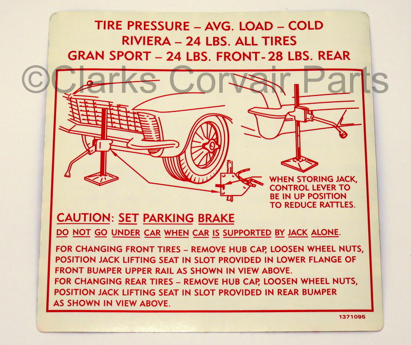 Part number R174: 1965 GS JACKING SHEET NON-GS = R173